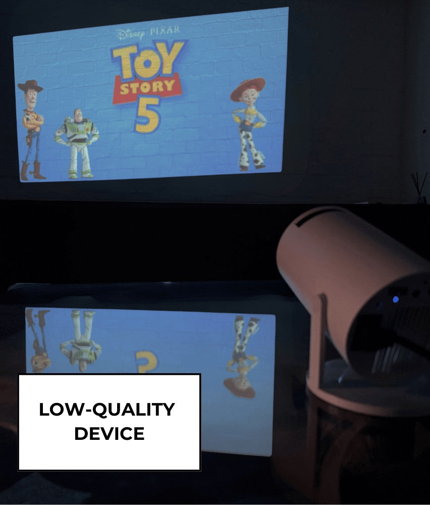 Thanks to its 180° swivel base and smart image correction, you can tilt, flip, and project on virtually any surface without needing a tripod or mount.