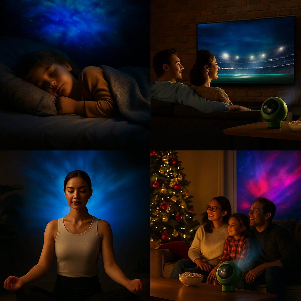 🎄 Whether it’s Christmas Eve by the tree, a cozy holiday dinner, or a kids’ sleepover, it instantly transforms any space with a magical aurora effect.
