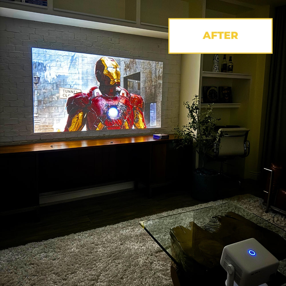 Transform any wall into a stunning 120” display that captures every detail in vivid color and clarity. Perfect for small bedrooms, cozy apartments, or on-the-go setups — it’s professional-grade projection that fits your life.